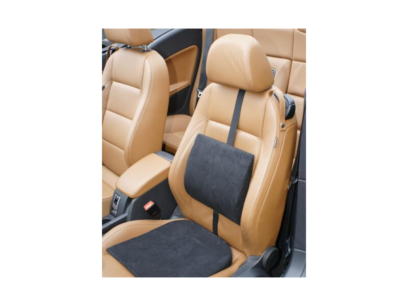 Durch das flexible und dehnbare Halteband passt das Kissen auf nahezu jeden Stuhl und Autositz. Ideal auch im Liegen anzuwenden zur Unterstützung des LWS-Bereiches. Pflegeleicher Microfaser Velours-Bezug , mit Reißverschluss. Größe 30 x 26 cm. Farbe schwarz. VE 1 Stück. (Ebenfalls abgebildet: Auto-Keilkissen Multiflex, EGROH-Art.-Nr. 260030.)