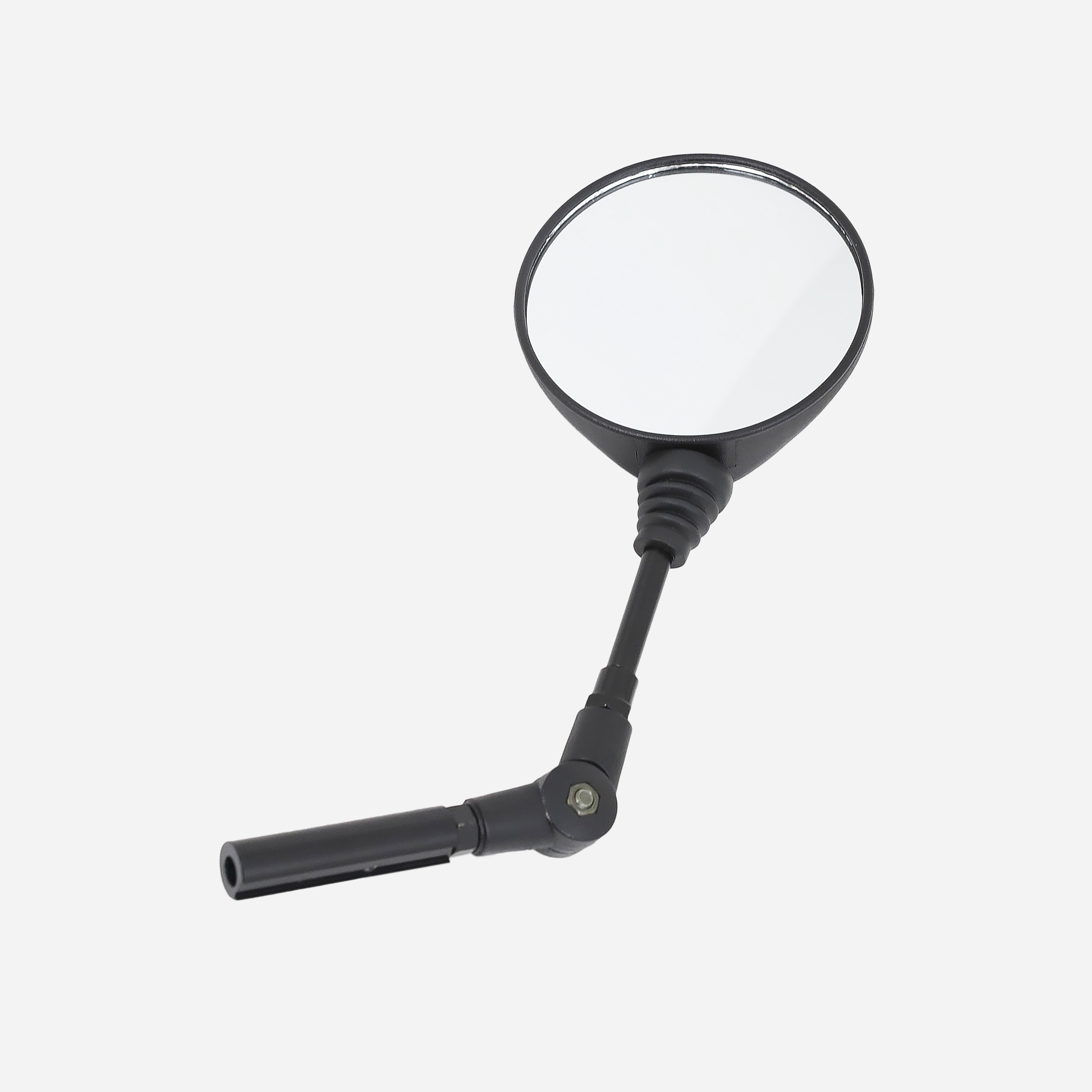 Ähnlich wie beim ergoflix-Bedienmodul kannst Du den ergoflix-Rückspiegel in nur wenigen Handgriffen befestigen, ohne spezielles Werkzeug zu benötigen. Ob an der linken oder rechten Armlehne, entscheidest Du. Wichtig ist nur, dass die Lehne frei bzw. unbesetzt ist und dort nicht das Bedienmodul montiert ist. Schiebe den Halter einfach in das Rohr, das sich unter der jeweiligen Armlehne befindet und fixiere ihn mit der Sternschraube. Anschließend kannst Du den Spiegel in eine beliebige Position bringen. Dank der beiden Gelenke (Kugel- und Drehgelenk) sind flexible Einstellungsmöglichkeiten gegeben.